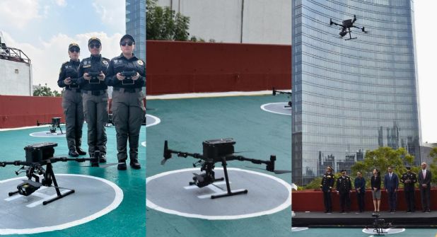 Los drones fueron presentados en un acto encabezado por la jefa de Gobierno, Claudia Sheinbaum, el titular de la SSC, Omar García Harfuch y la secretaria de Seguridad y Protección Ciudadana, Rosa Icela Rodríguez.