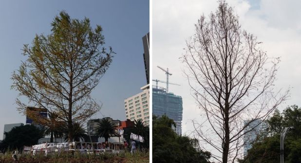En el ahuehuete ubicado en Paseo de la Reforma se encuentra en un estado preocupante después de ser plantado el pasado 5 de junio en la antes Glorieta de la Palma, ahora Glorieta de las y los desaparecidos (nombrada así por colectivos de familias buscadoras). Tras el deterioro de sus hojas, autoridades capitalinas y especialistas dedicaron su estudio tras tomar una muestra del árbol.
