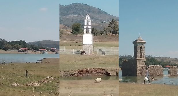 “Somos cientos de familias que vivimos de estos, del turismo, si se nos seca la presa entonces tendremos problemas, ya que es el atractivo del lugar, en esta temporada de lluvias no alcanzó el nivel proyectado, el año anterior sí se llenó, pero al mes de abril de 2022 comenzó un descenso, ya veíamos las bases de las iglesias. Con las lluvias de este año se llegó un 30 por ciento. Si ve le faltan como diez metros para que llegue a la cúpula de la iglesia”, dijo don José Melquiades, quien cuida borregos y ayuda al joven lanchero que cruza a los turistas a un restaurante del otro lado de la presa.
