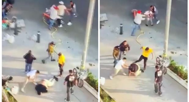 Un video captó el momento exacto de la agresión que recibieron por no haber pagado 50 mil pesos de cobro de piso que les exigían. Los hechos ocurrieron en en calles de la colonia Granjas Modernas, donde trabajadores de una construcción grabaron cuando cuando unos sujetos llegan y se van contra uno de los taxistas.