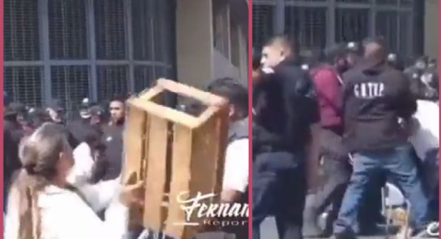 En un video publicado en redes sociales se puede ver como se calentaron los ánimos afuera del panteón, donde volaban por los aires cosas que los comerciantes lanzaban contra los policías. Sin embargo, el enfrentamiento fue casi cuerpo a cuerpo y se observa como una comerciante se enfrenta a uno de los elementos y de un momento le lanza el guacal de madera, a lo que el sujeto sólo alcanzó a taparse con el brazo.