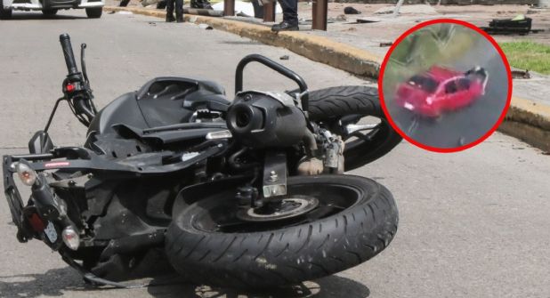 En este sentido, el conductor del automóvil rojo intentó darse a la fuga luego de que al atropellar al motociclista puso en marcha su vehículo y salió del pavimento de un costado para evitar aplastar al motociclista.