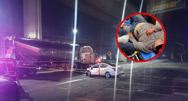 Para tratar de impedir que se fuera sin pagar, el despachador brincó encima del cofre del auto y lo arrastró alrededor de 50 metros hasta que el vehículo impactó contra un tracto camión con rótulos de la empresa Harinas Elizondo.
