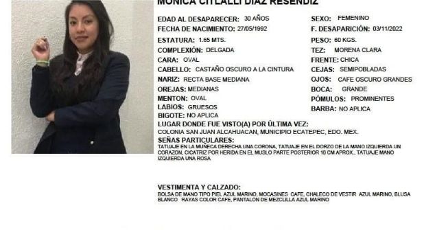 Ecatepec.- Mónica Citlali Díaz Reséndiz, maestra de inglés reportada como desaparecida en Ecatepec, Estado de México, fue localizada sin vida este miércoles, confirmaron familiares a La Silla Rota.