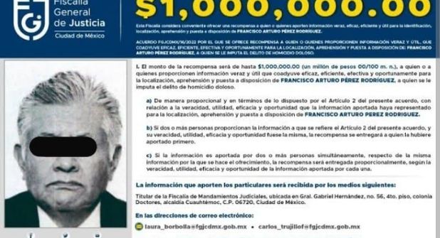 La Fiscalía General de Justicia (FGJ) de Ciudad de México determinó no pagar la recompensa de hasta un millón de pesos que ofreció por información que llevara a la captura de Francisco Arturo “N”, uno de los probables responsables del colapso del colegio Enrique Rébsamen, ocurrido en el sismo del 19 de septiembre de 2017.