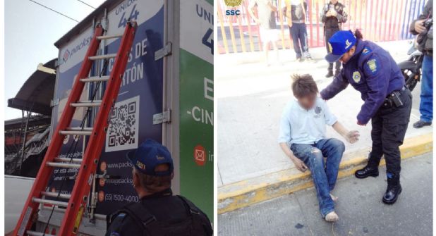 La SSC informó que mientras los oficiales realizaban recorridos de vigilancia en calles de la colonia Aquiles Serdán, el conductor de un camión les solicitó su apoyo y refirió que, metros atrás, varias personas le señalaron que había un sujeto recostado en la parte superior de su unidad, por lo que decidió orillarse y solicitar ayuda.