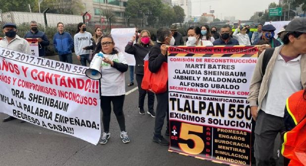 A más de cinco años de que perdieron sus hogares debido al terremoto del 19 de septiembre de 2017, habitantes de Tlalpan 550 bloquearon este vierneds Calzada de Tlalpan, a la altura de Santa Anita, para exigir que las autoridades les den una respuesta concreta y que se sancione a quienes han incumplido los contratos necesarios para reconstruir sus viviendas.
