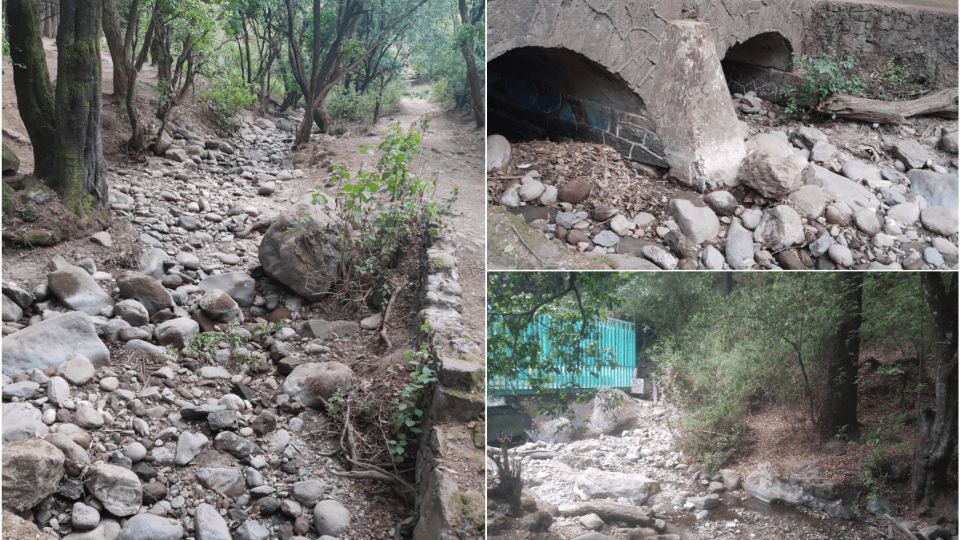 El afluente, el único que queda vivo en la Ciudad de México y que nace en los Dinamos, donde aún se pueden ver sus aguas cristalinas que descienden del cerro, se quedó sin agua a la altura de donde se encuentra una potabilizadora del Sistema de Aguas de la Ciudad.