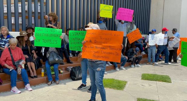 Nezahualcóyotl, Méx.- Pequeños propietarios del polígono “Los Tlateles”, ubicado en el municipio de Chimalhuacán, se manifestaron frente al Poder Judicial de la Federación, con sede en Nezahualcóyotl, para rechazar la incorporación de sus tierras en la declaratoria de Área Natural Protegida del Lago de Texcoco, declarada en marzo pasado por el presidente Andrés Manuel López Obrador.