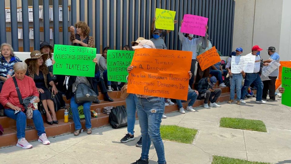 Los manifestantes, adheridos a la “Unión de legítimos propietarios en defensa de la tierra Tlateles Chimalhuacán” (ULPDTCh), exigieron a los jueces acelerar los amparos que ingresaron 56 familias nativas de la localidad para exigir la cancelación del proyecto ambiental al considerar que nunca fueron tomados en cuenta por las autoridades federales y así lograr que sus tierras no formen parte de la zona de conservación.