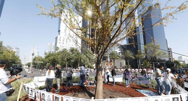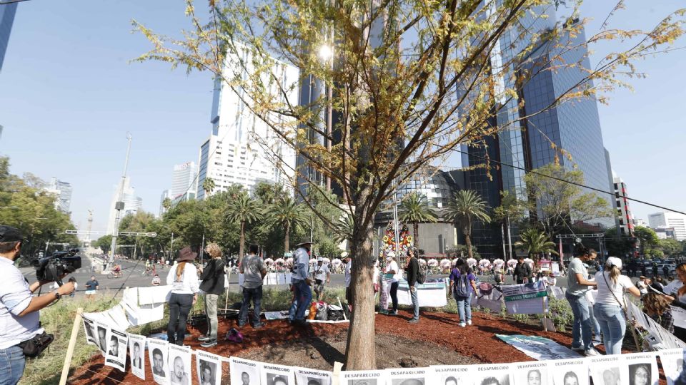 Los manifestantes demandaron a las autoridades rebautizar el sitio, ubicado en el Paseo de la Reforma, la principal avenida de la capital, como la "Glorieta de las y los desaparecidos", por lo que llevaron carteles y fotografías con la información de sus seres queridos no localizados.