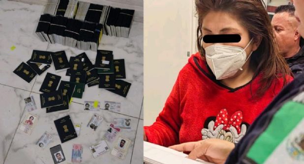 Ecatepec. – Policías locales detuvieron a una mujer de 40 años de edad en posesión de 210 pasaportes extranjeros y 24 credenciales de residencia presuntamente falsificadas.