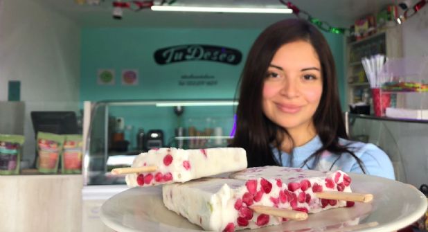 Con nogada y granada hechas paleta de hielo, Dayana decidió celebrar las fiestas patrias en su heladería “Tu deseo” ubicada en la colonia Independencia de la capital mexiquense.