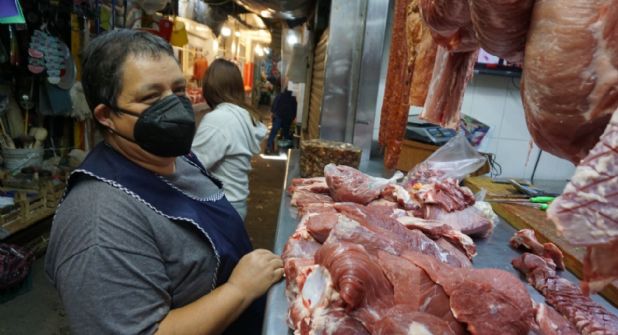 “Son más ventas de la pechuga para el pozole o la tinga, las enchiladas, ahorita está a 100 pesos el kilo de pechuga y aquí está barato en comparación de otros lados de la ciudad está a 120. Muchos compran carne de puerco porque es la que está más barata.