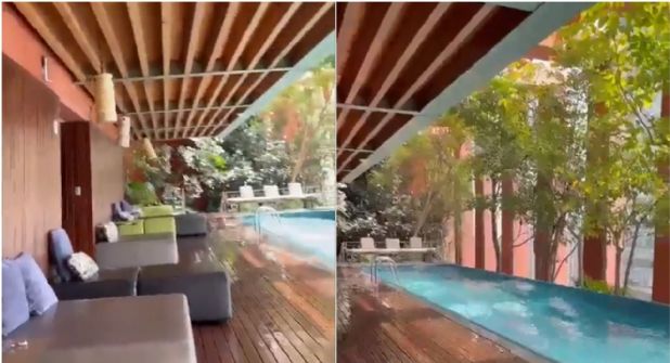 Además, otros tienen sus propias albercas, como es el caso del edificio de Reforma 27, en donde una pareja que disfrutaba de la exclusividad del lugar fue sorprendida por el sismo.