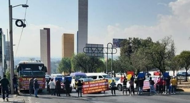 Naucalpan, Méx.- Un grupo de transportistas y vecinos provenientes del municipio de Chimalhuacán realizaron un bloqueo en el Periférico Norte a la altura de Las Torres de Satélite, para denunciar irregularidades en las finanzas del Sistema de Red de Transporte Mexibús III, señalando a quien dirige el consejo directivo de realizar operaciones fraudulentas.