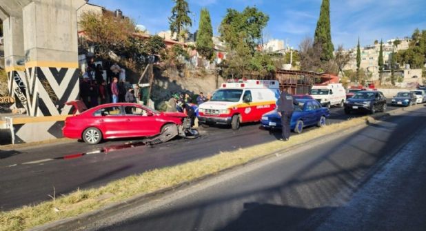 Nicolás Romero, Méx.- Un día de accidentes ha caracterizado este lunes en el Valle de México, donde dos motociclistas fallecieron en distintos puntos, se suscitó una volcadura de un auto, un choque de tres vehículos y dos mujeres arrolladas.