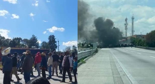 Los pobladores de Mexicaltongo colocaron piedras y llantas en los 4 carriles de la autopista, en el sentido a la Ciudad de México y de manera intermitente bloquean también el sentido a Querétaro, piden ayuda para apagar el incendio en el manantial que se encuentra en llamas debido a una fuga de los ductos de Pemex.