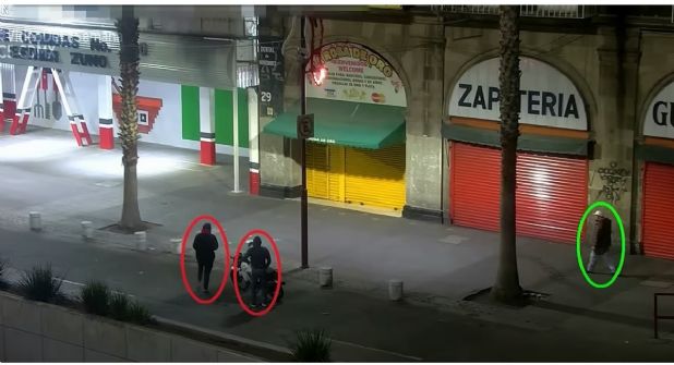 Cuando los motoladrones lo alcanzan, le propinan varios golpes hasta que la víctima cede a entregar sus pertenencias. Luego de que los motoladrones logran su cometido los sujetos huyen del lugar en su motocicleta color blanco. En tanto, las cámaras de vigilancia de la Ciudad de México ya seguían el rastro de los delincuentes.