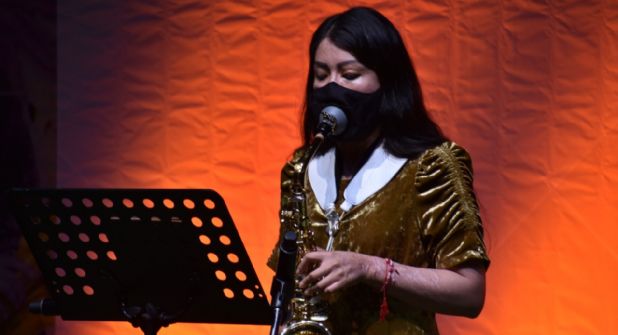 La activista y saxofonista se reunió con más de dos mil estudiantes de diversas escuelas de secundaria y preparatoria, así como personas adultas mayores y colonos en conocido teatro del centro de este municipio, a quienes ofreció una charla preventiva de la violencia de género.