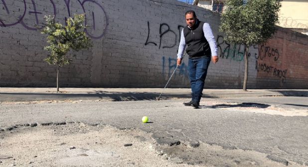 “Es fácil la labor, hay muchos hoyos (baches) por toda la ciudad y, sobre todo, es esta calle de Morelia. Podríamos tener los mejores campos de golf”, comentó César, vecino de Rincón de San Lorenzo.