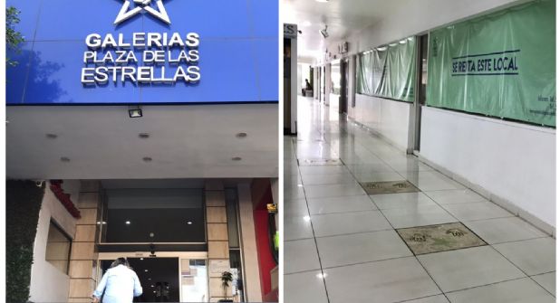 Al ingresar por donde está el muro verde hay un patio que permite ver los dos pisos de los que se compone la plaza. Ahí todos los locales están abiertos. Es el corazón de la Galería Plaza de las Estrellas y el inicio del Paseo de las Luminarias. Pero al avanzar, dejar ese espacio y llegar a otro pasillo es que comienzan a verse alternadamente locales cerrados, con sus anuncios de renta, y los abiertos.