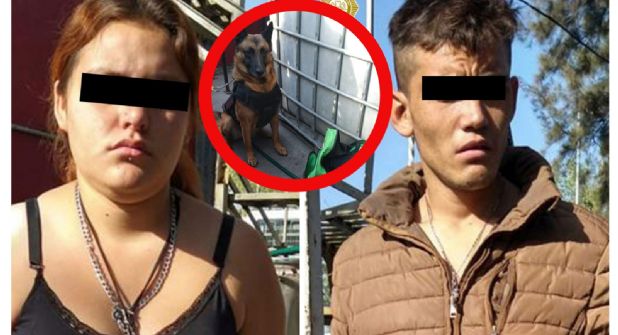La canina modificó su conducta ante la pareja y realizó lo que se conoce como “marcaje positivo” cerca de una mochila, donde se aseguraron cinco bolsas pequeñas de plástico que contenían aparente cocaína en cristal.