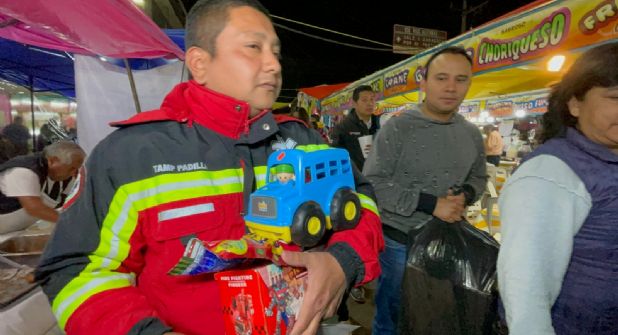 Se trata de miembros del equipo de Rescates y Urgencias Prehospitalarias (RUPAC), quienes recorrieron desde esta semana mercados y locatarios de Nezahualcóyotl para solicitar la donación de un juguete.
