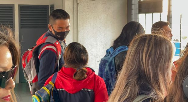 Como esta familia, varios usuarios abordaron los autobuses especiales en la terminal UMB del Mexibus Línea 4 que brindará servicio emergente a los usuarios que viajen hacia la Ciudad de México hasta la reparación de la Línea 3 del Metro.