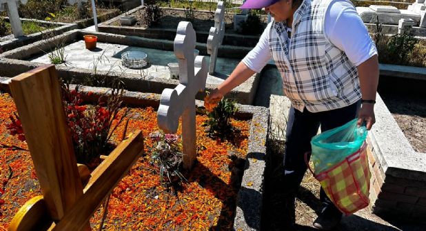 “Año con año vengo aquí a limpiar, es la costumbre que tenemos, a poner un manojo de flor. En la tardecita los vamos a esperar en la casa, ya les preparamos algo de comida, lo que Dios socorra, pero siempre algo de comida”.