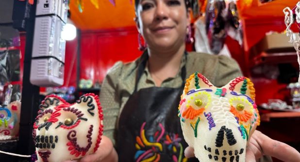 Araceli es parte de las 84 familias de artesanos que, a través de la Feria del Alfeñique que se coloca en Los Portales de Toluca, tratan de mantener vivos a los que se adelantaron en el camino; sin embargo, la inflación no perdona a las tradiciones, ya que los precios incrementaron 30% en comparación con el año pasado.