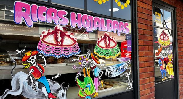 En la Panadería Rocidel han confiado en su trabajo por más de una década, por lo que, tan pronto termina septiembre, esperan que llegue para que decore la fachada del local.