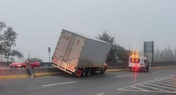 Ante ello, elementos de la Guardia Nacional han habilitado un carril a la circulación, hasta momento se desconoce que pudo haber provocado que el tráiler se impactará contra el muro de contención.