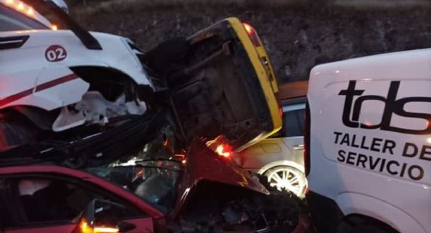 Entonces ocurriría el primer accidente cuando antes del amanecer, se impactaron en el auto colapsado una camioneta y dos autos más, luego un tráiler cuyo conductor no alcanzo a frenar, debido a que el accidente no estaba abanderado.