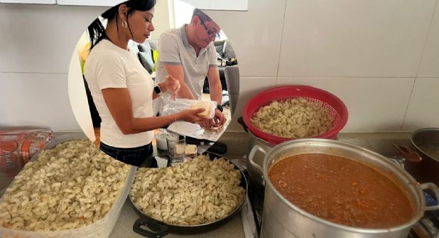 En cada jornada, Leslies prepara toneladas de comida haciendo un cálculo aproximado de la población a la que se alimentará.