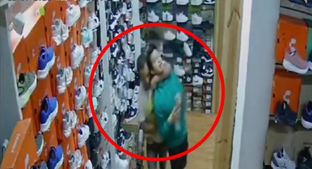 El hecho quedo registrado por las cámaras de videovigilancia del establecimiento, en las cuales se puede observar el momento en que la pareja ingresa a la zapatería y finge ver los artículos expuestos en los aparadores para posteriormente aproximarse al lugar en el que se encuentra el encargado de la tienda.