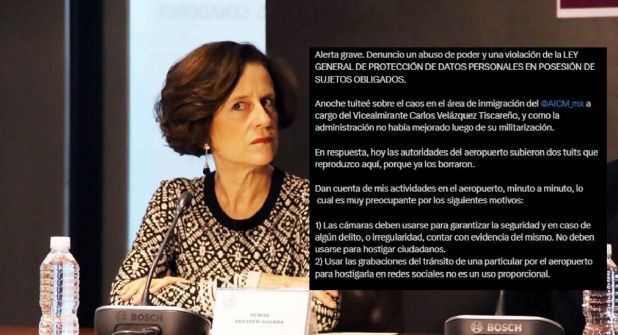 “Las autoridades del @AICM_mx están violando los siguientes artículos de la ley de protección de datos personales: Artículo 16 y Artículo 25... El gobierno está haciendo lo que no debe: usar información personal (movimientos dentro del aeropuerto) para amedrentar a una ciudadana. Procederé a denunciar y a defenderme legalmente”, agregó.