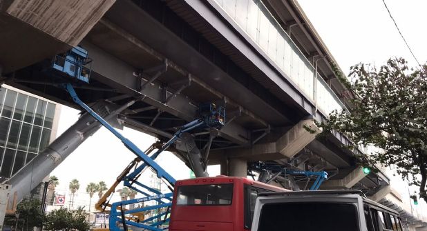 El tramo donde se cayó la trabe entre Olivos y Tezonco ya luce reforzado, y gran parte de las columnas están apuntaladas con enormes estructuras tubulares, para evitar la sospecha que algún perno faltante cause otro incidente.