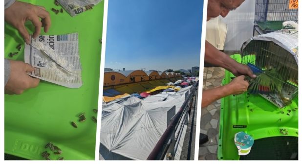 En el tradicional mercado ubicado en inmediaciones de La Merced los vendedores ofertan plumas de loro en 100 y 200 pesos. Ante la vista de los visitantes, los vendedores le arrancan las plumas a los loros para venderlas al momento.
