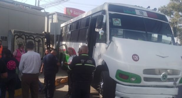 Cuautitlán, Méx.- Al pretender ganarle el paso al tren, un camión suburbano de pasajeros fue embestido en la Calzada de Guadalupe, en pleno centro de este municipio. El accidente dejó un saldo de 5 personas lesionadas, mientras que la unidad de transporte sólo resulto con daños mínimos aunque fue arrastrada varios metros por la locomotora.