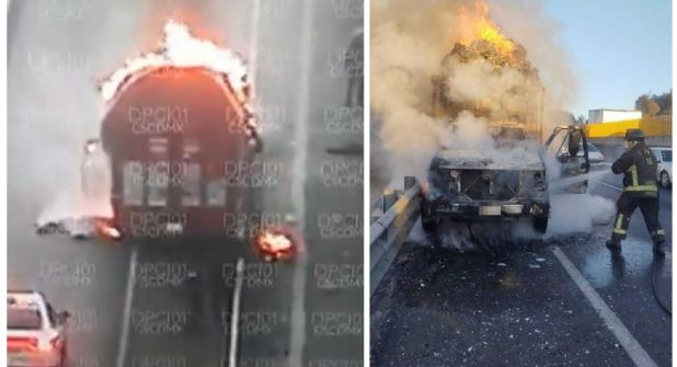 En videos de cámaras de vigilancia que circulan en redes sociales se observa el momento en el que el camión de carga se incendia mientras avanzaba sobre la autopista México-Puebla. De acuerdo con las primeras versiones, el vehículo circulaba normal y de pronto tuvo que detener su marcha por las intensas llamas que salían de la parte superior de la caja, las cuales se expandieron ya que cayeron fragmentos de la camioneta al pavimento.