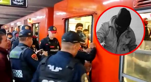 En las imágenes se observa a policías de la Secretaría de Seguridad Ciudadana de la capital mientras auxilian al hombre, quien quedó prensado de un dedo en la puerta de un vagón, de acuerdo con información de Jorge Becerril.