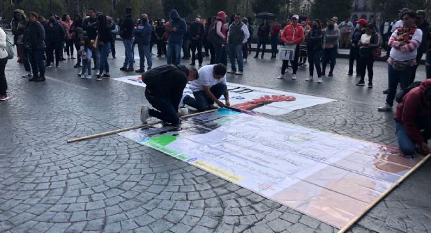 Integrantes del Magisterio Mexiquense Contra la Reforma Educativa (MMCRE) adscrito a la Coordinadora Nacional de los Trabajadores de la Educación en el Estado de México (CNTE) se manifestaron frente a Palacio de Gobierno, en Toluca, para exigir que se les otorguen bases, infraestructura y servicios públicos en escuelas de la zona oriente de la entidad.