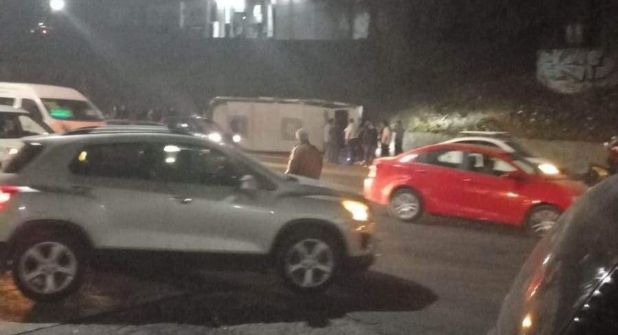 En el entronque de la Gustavo Baz con la López Portillo, cerca de la estación del Mexibús La Quebrada, un microbús que circulaba en el sentido hacia Coacalco se volteo con pasajeros a bordo, el accidente ocurrió alrededor de las 21:15 horas de este miércoles.