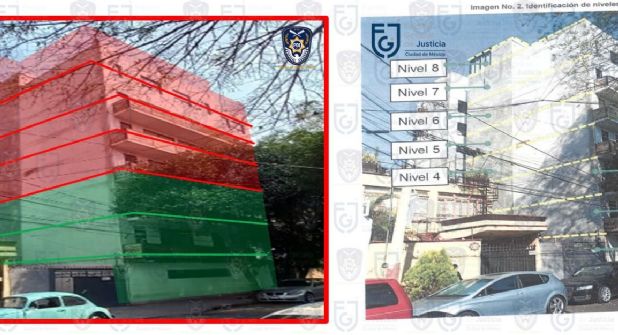 Ulises Lara, vocero de la FGJ, informó que dicho inmueble está en la calle de Pirineos, en la colonia Portales Sur, y tiene un excedente de cinco niveles sobre los tres permitidos de conformidad con el Programa de Desarrollo Urbano de la alcaldía Benito Juárez.