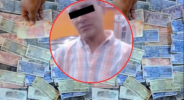 A la entrada del pasillo que da a una iglesia cercana, los oficiales interceptaron a la persona que fue señalada como el probable responsable de portar billetes falsos e intentar cambiarlos por dinero real. A dicha persona le aseguraron un rollo de billetes posiblemente falsos y antiguos, dos terminales bancarias y cinco bolsitas que contenían una sustancia similar a la cocaína