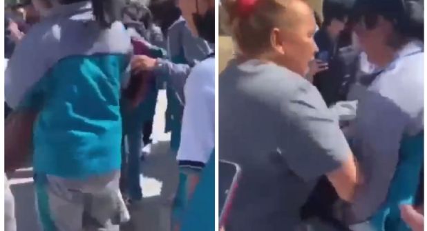 Al percatarse de ello, al menos tres de las madres de familia que se encontraban en esos momentos afuera de la escuela secundaria, intervinieron para evitar que se siguieran golpeando, se observa que con dificultad separan a las dos menores.