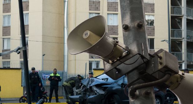 La gente “no vandaliza los postes… pero sí los choca”, fue la respuesta que dio García Ortegón ante la pregunta de por qué fallan los altavoces durante un sismo o un simulacro.