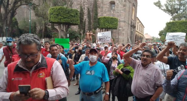 Los inconformes se plantaron frente al Palacio Municipal, del lado de Tesorería, donde corearon consignas en contra del alcalde Marco Antonio Rodríguez Hurtado y contra el Tesorero, Ricardo Contreras Cervantes, pidiendo ser atendidos en sus demandas de pago por liquidación al ser separados del servicio público.