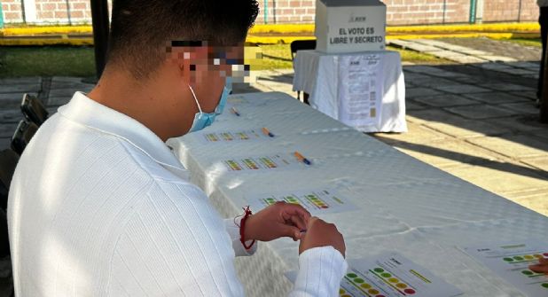 Zinacantepec, Estado de México.- La jornada de votación anticipada en el Estado de México para la elección de la próxima gobernadora llegó este miércoles al Centro de Internamiento para Adolescentes “Quinta del Bosque”, en el municipio de Zinacantepec, donde siete jóvenes votaron por primera vez.